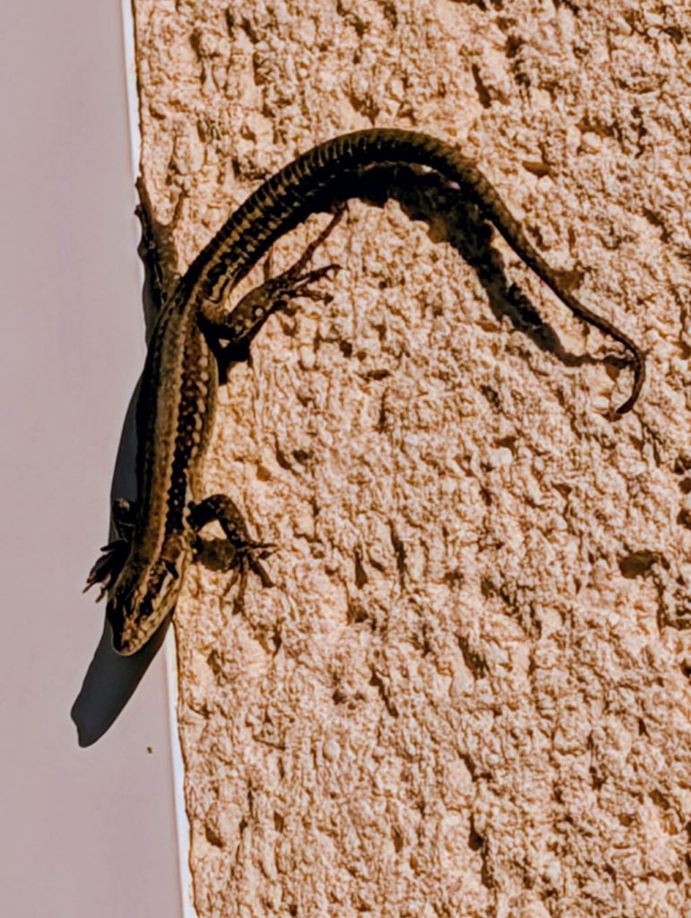 Le jeudi 18 septembre, il y avait du soleil et nous avons photographié un lézard sur un muret du plateau de sport. Il a fallu faire vite parce qu’il s’est réfugié dans les feuilles.