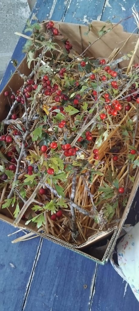 Nous pensions avoir trouvé l’aubépine juste derrière l’arboretum de Neuville. Nous avons pu toucher des baies rouges, nous avons vu que les feuilles avaient des “V” comme dans l’image envoyée par Woody (et aussi dans notre dossier fabriqué grâce aux envois de l’observatoire). Pourtant nous nous sommes trompés, nous avons trouvé un églantier.