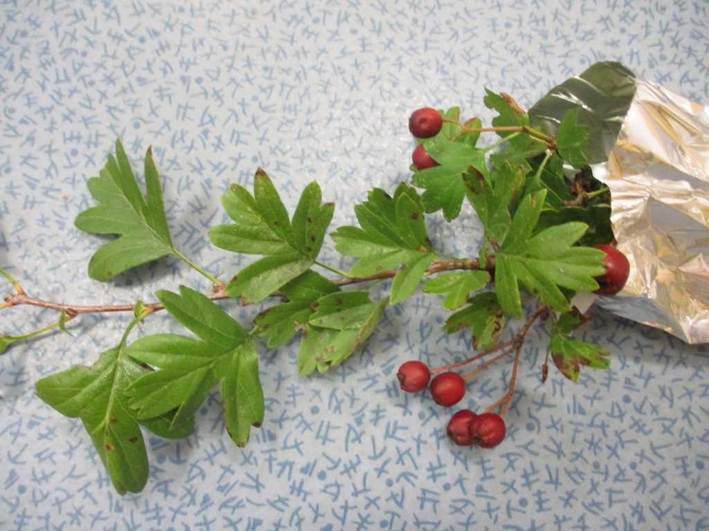 Lors de notre promenade dans le village, nous n’avions pas trouvé d’aubépine, mais Ruben en a trouvé derrière chez lui !