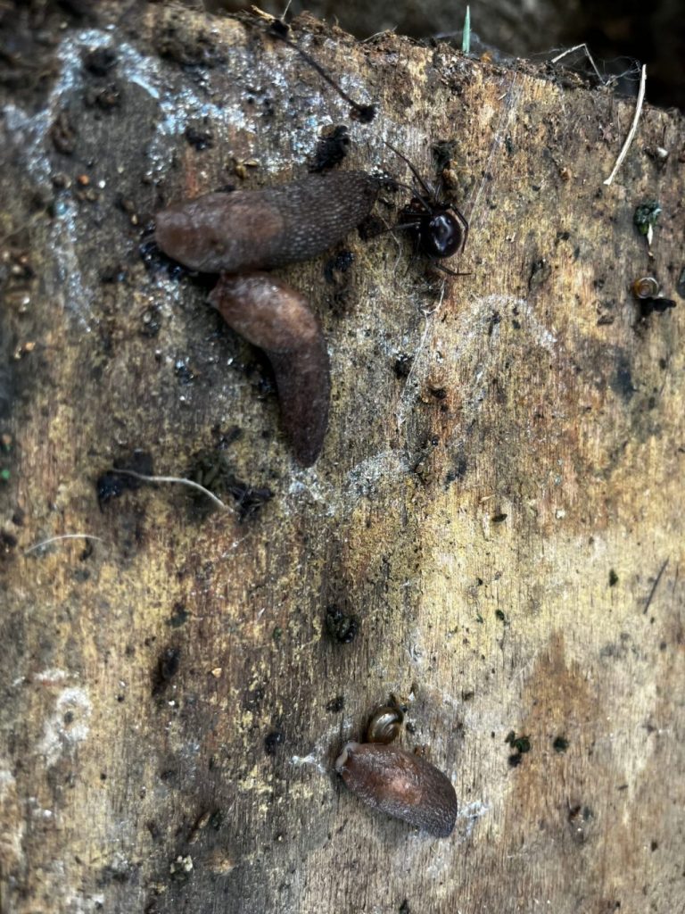 Comme il faisait beau on a pensĂ© regarder sous les pierres du jardin. Voici des limaces d’une dizaine de centimĂštres.