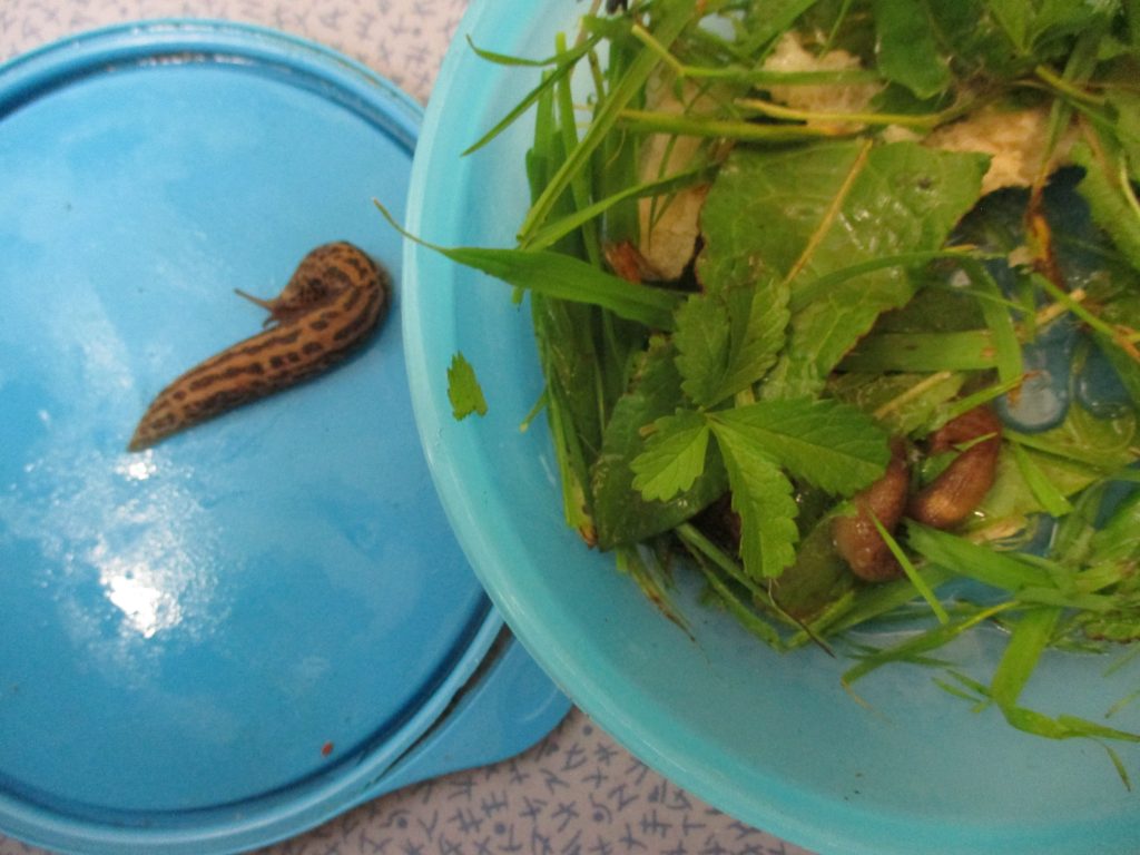 Nous avons donc cherchĂ© leur nom et trouvĂ© que c’Ă©tait une limace lĂ©opard et deux limaces grises.