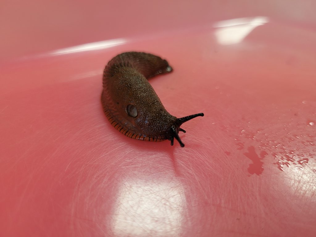 Le lendemain, Axel nous a apportĂ© une limace rouge trouvĂ©e dans son jardin. Elle a passĂ© un petit moment en classe avec nous. Puis, nous lâavons libĂ©rĂ© dans notre potager. Dans le potager, nous avons aussi posĂ© au sol des coupelles pour que les limaces se cachent dessous.