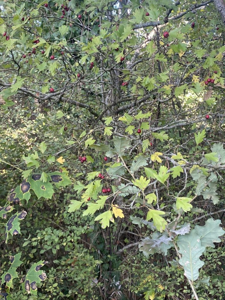Nous avons trouvé de l’aubépine au parc de la Robla. C’était difficile, il y a plein d’arbres différents avec des petits fruits rouges.