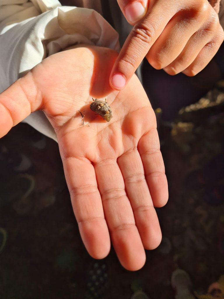 Nous avons soulevé des gros cailloux et des bouts de bois pour les trouver. Elles étaient bien camouflées et toutes petites.