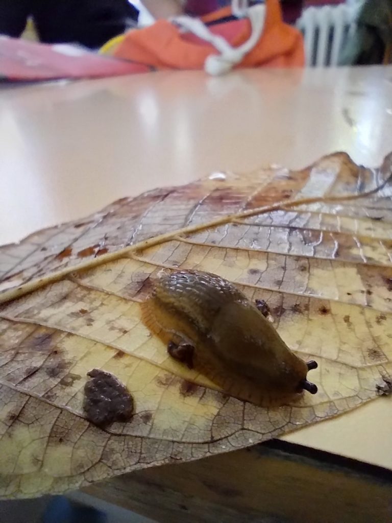 Mercredi, lors de notre sortie d’Ă©cole dehors au parc de Valvert, Maxime a trouvĂ© un bĂ©bĂ© limace.