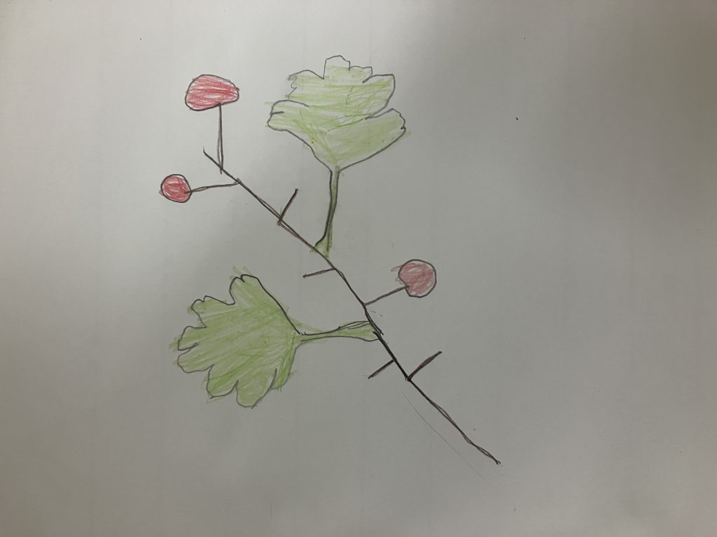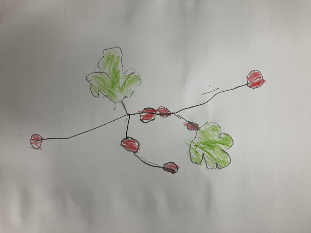Puis nous avons dessiné la tige, les épines et les fruits rouges