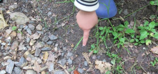 On est allĂ©s en forĂȘt avec les CM2 pour faire du land art et on a trouvĂ© une limace.