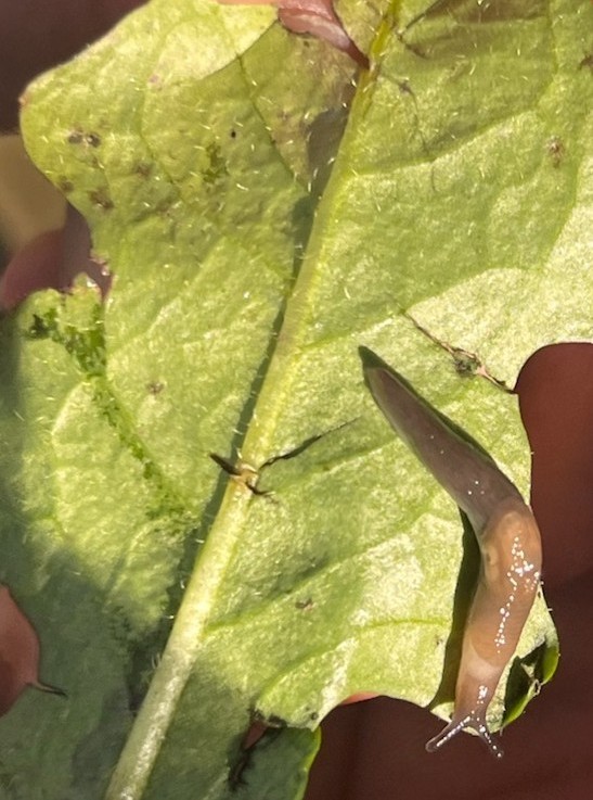 Lors de notre sortie, un Ă©lĂšve a vu une limace mais ne l’a pas dit pour la photo !