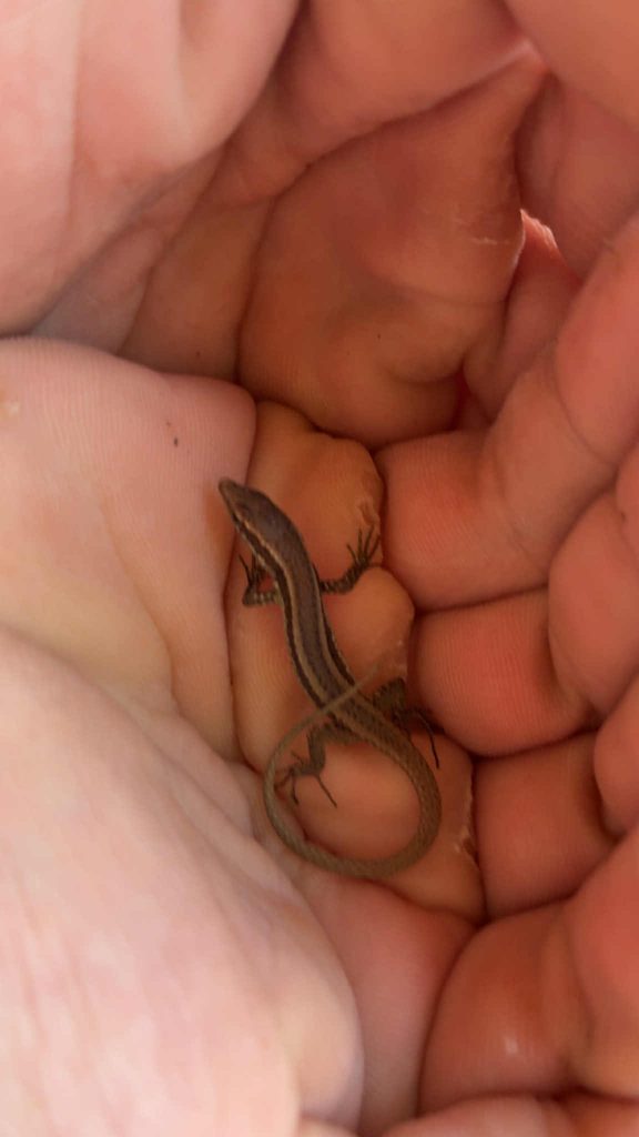 Lors d’une balade, nous avons découvert un joli lézard des murailles, il était assez petit, nous l’avons pris dans nos mains, pris en photo, puis, nous l’avons relâché.