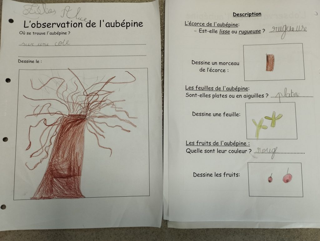 Nous avons travaillé en groupe de deux sur l’aubépine.