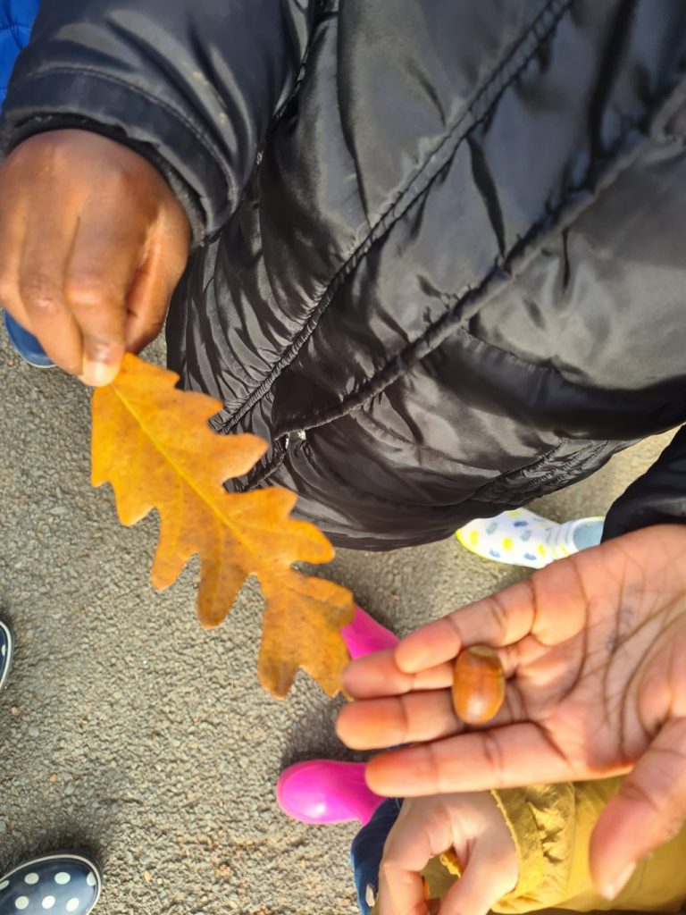 Nous avons ramassé des glands et des feuilles pour les dessiner en classe.