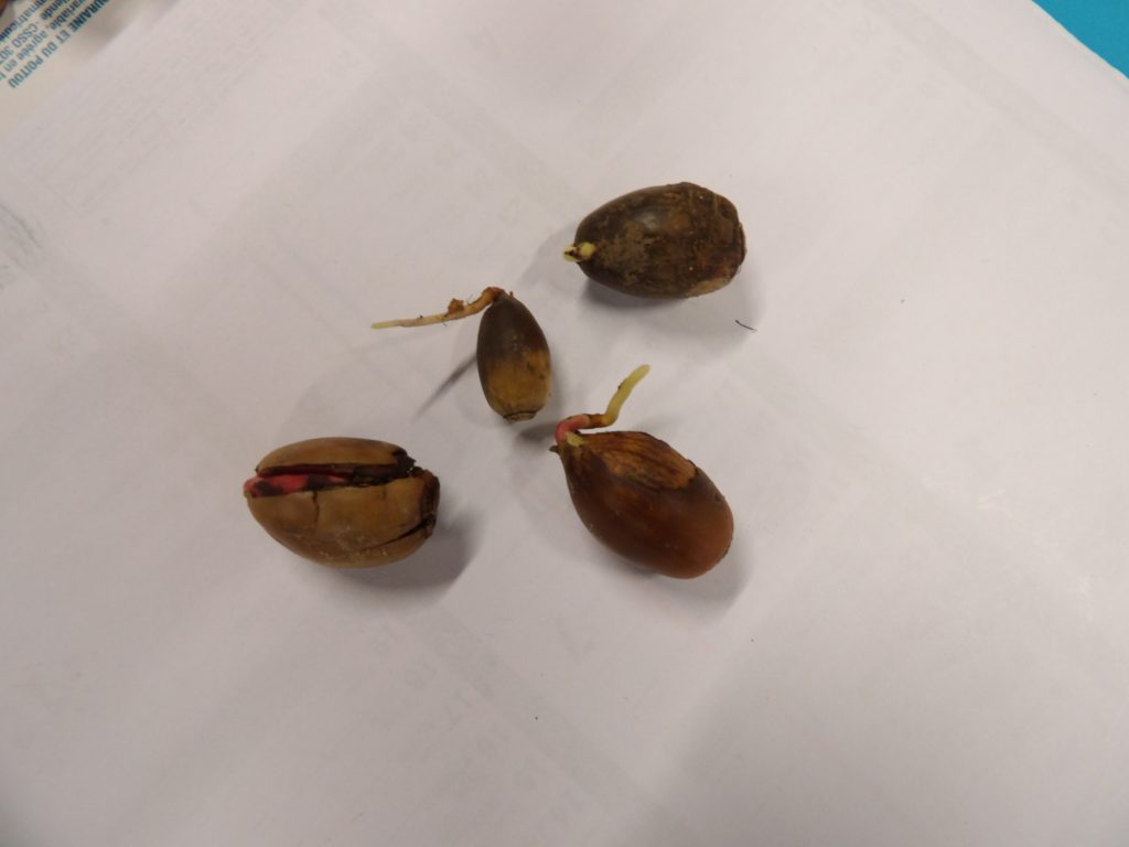 - AUTRES INFORMATIONS : Les fruits des chênes s’appellent des glands. Ils sont accrochés dans l’arbre par un pédoncule et sont collés à une cupule. Ils ont une peau et à l’intérieur, il y a une graine. Par terre, il y avait plein de glands qui commençaient à s’ouvrir et il y avait une petite pousse blanche. On dit qu’ils germent. Si cela se passe bien, ils pourront devenir des petits chênes.