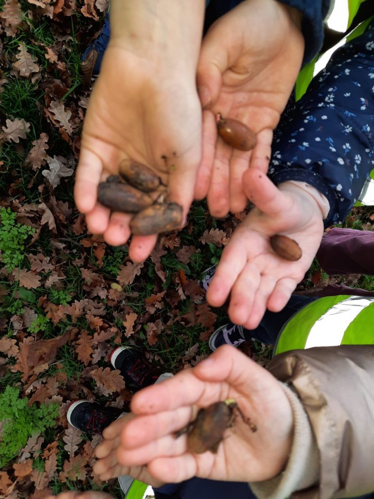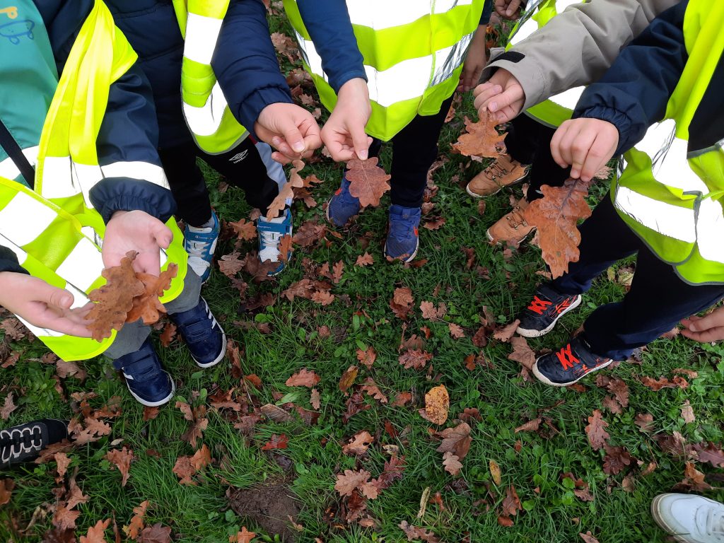 Nous avons trouvé plusieurs chênes lors d’une promenade autour de l’étang. Les élèves ont ramassé et dessiné des feuilles et des glands.