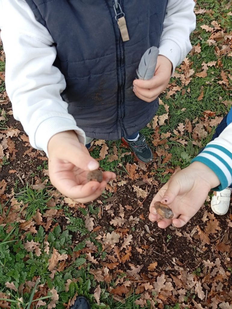 On a bien regardé par terre et on a trouvé les glands et les feuilles qui ont des vagues.