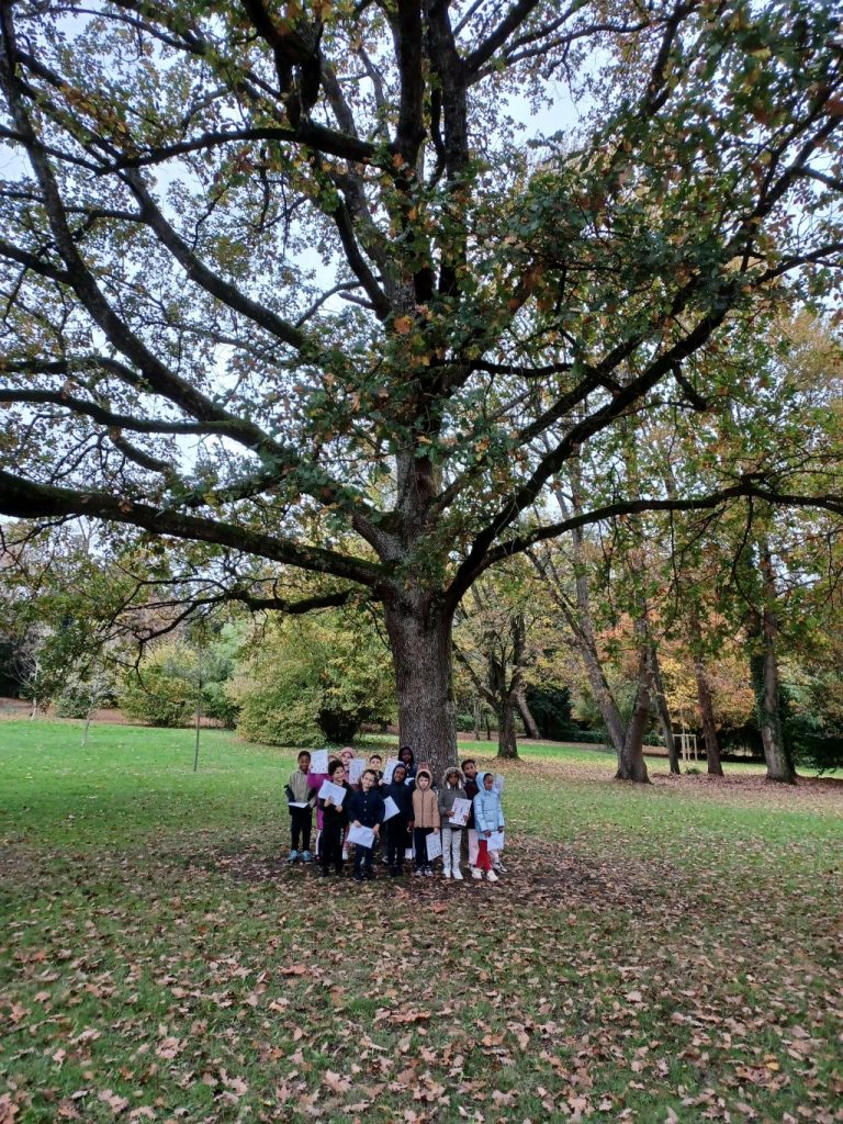 Nous sommes allés au parc de la Rabière pour faire une chasse au trésor d’automne. Nous avons ramassé des glands au pied d’un chêne majestueux. Nous lui avons même fait un câlin !