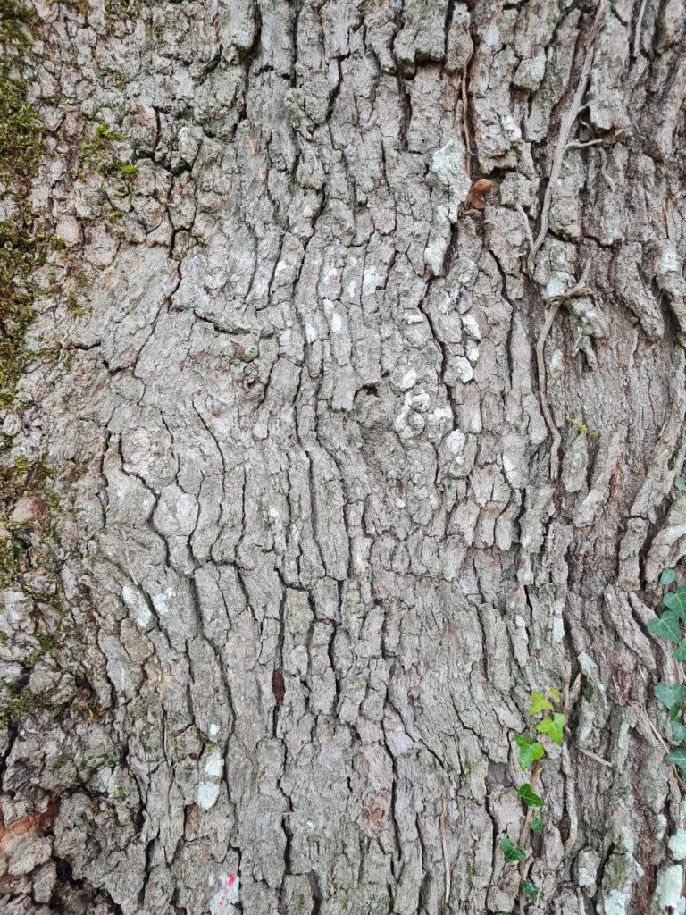 Ce chêne est immense. Nous avons trouvé des glands qui étaient tombés en dessous, nous avons aussi touché l’écorce qui est rugueuse.