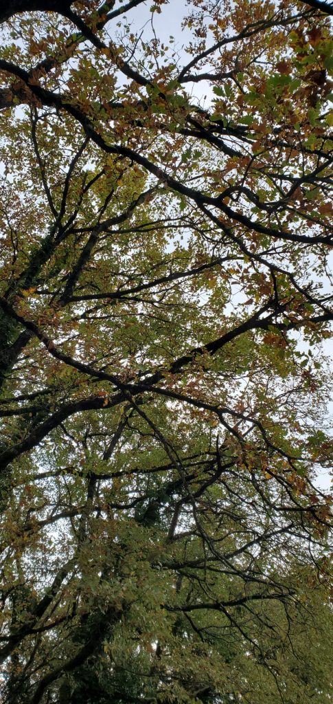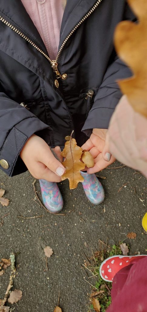C’est en allant au bois de notre classe dehors que nous avons vu des chênes; nous les avons reconnus car il y avait beaucoup de feuilles par terre et des glands.
