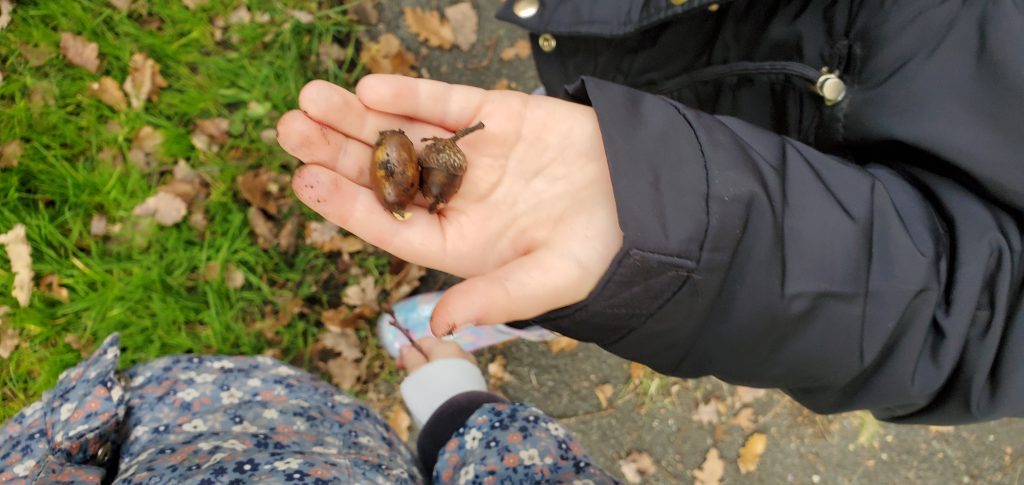 Nous en avons rapportés à l’école pour essayer de faire pousser de petits chênes.