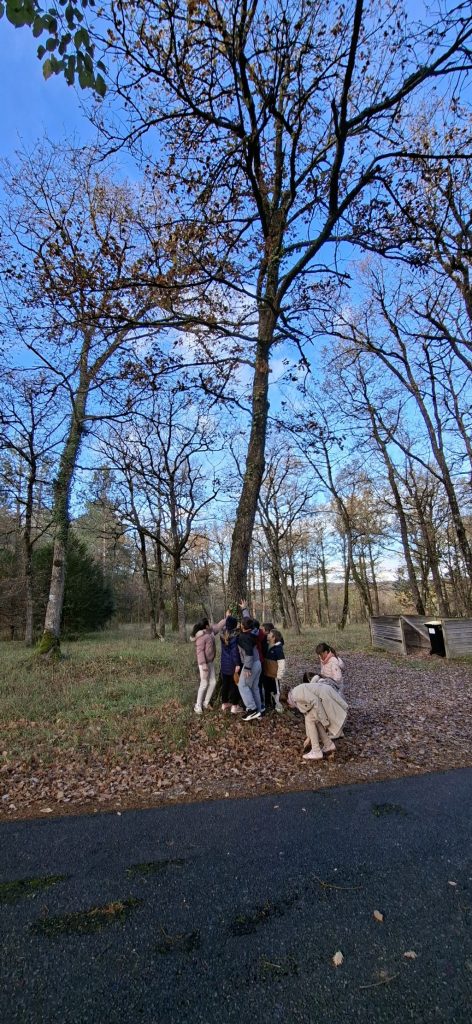 Nous avons touché le tronc. Son écorce était rugueuse. Au retour on a trouvé une petite limace dans la cupule d’un gland.