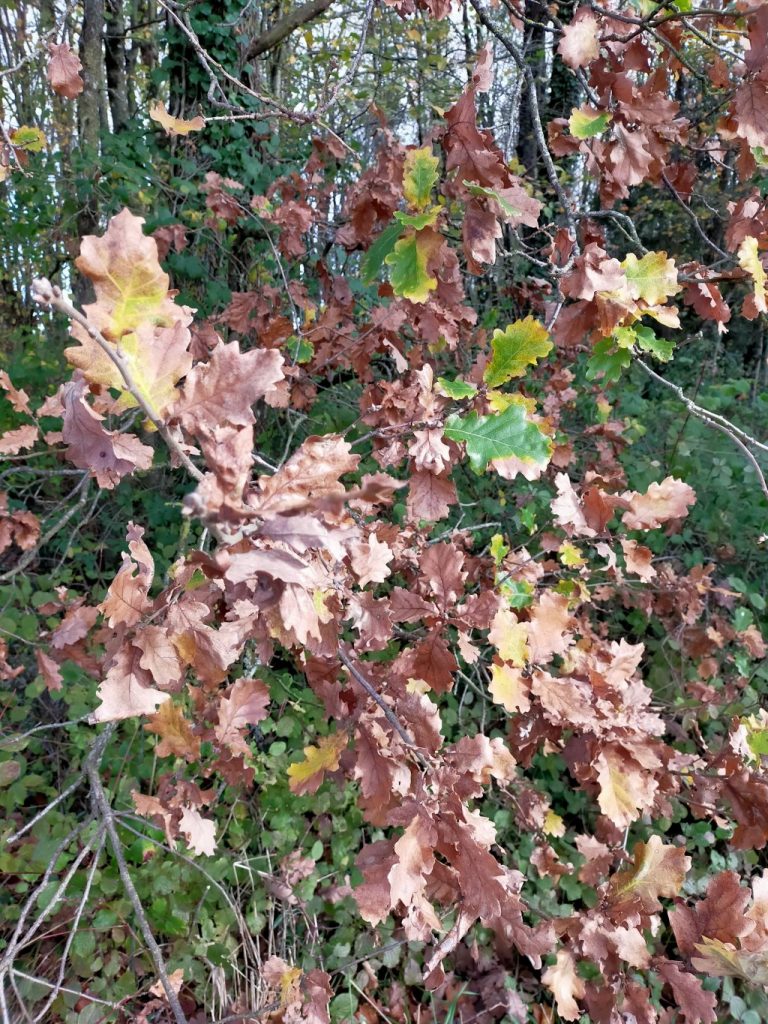 Nous sommes plus petit qu’un chêne. Les feuilles ne sont pas toutes de la même taille et de la même couleur. Nous avons aussi trouvé des glands.