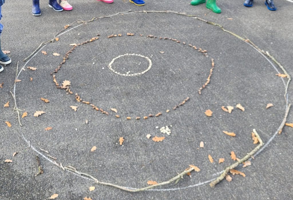 Avec, nous avons créé des cercles concentriques au sol, des bonshommes et même un circuit de billes.