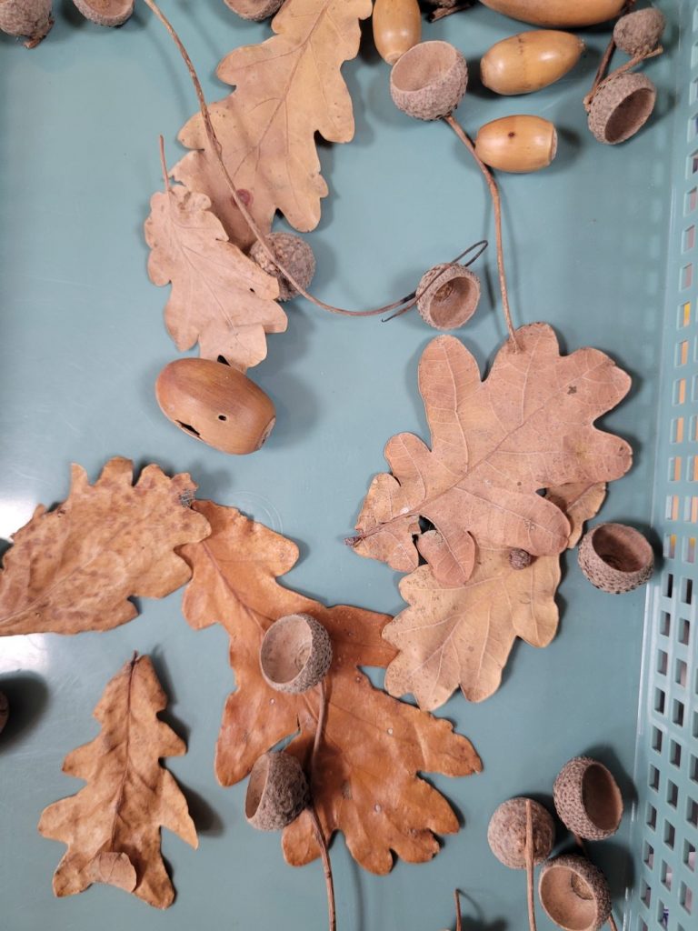 Les glands que nous avons trouvés avaient chacun un petit chapeau qui était accroché au pédoncule. Nous en avons ramassé beaucoup !