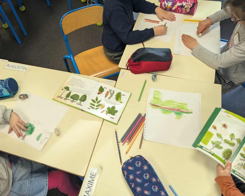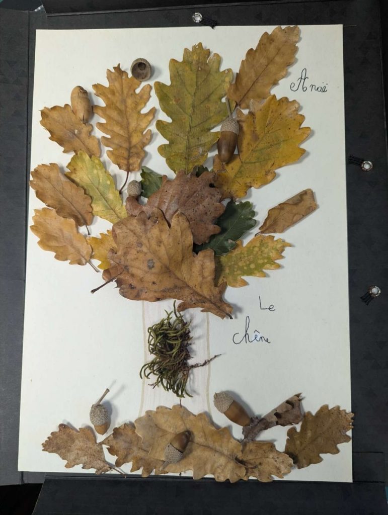 Nous avons fait des dessins d’observation. Plusieurs élèves ont apporté des feuilles, des glands et des dessins en classe.
