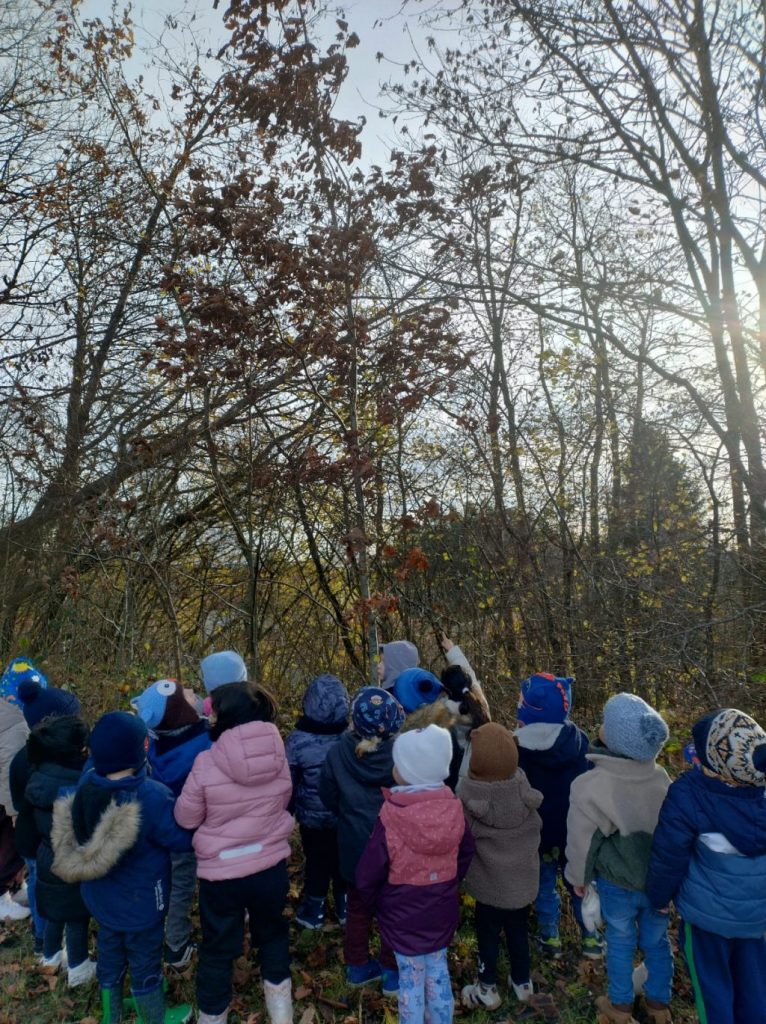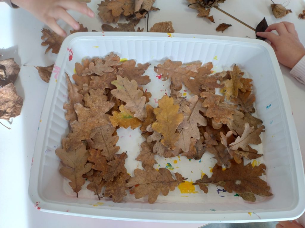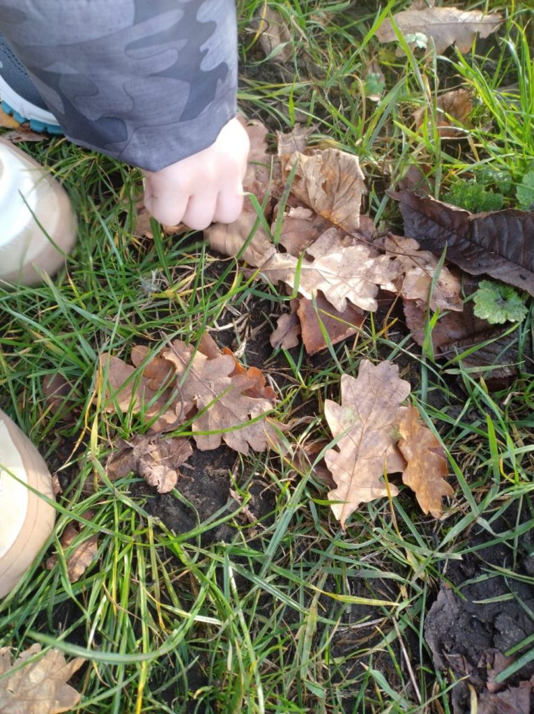 “Nous avons trouvé des feuilles de chêne par terre, dans la forêt. Nous avons trouvé des glands par terre.”