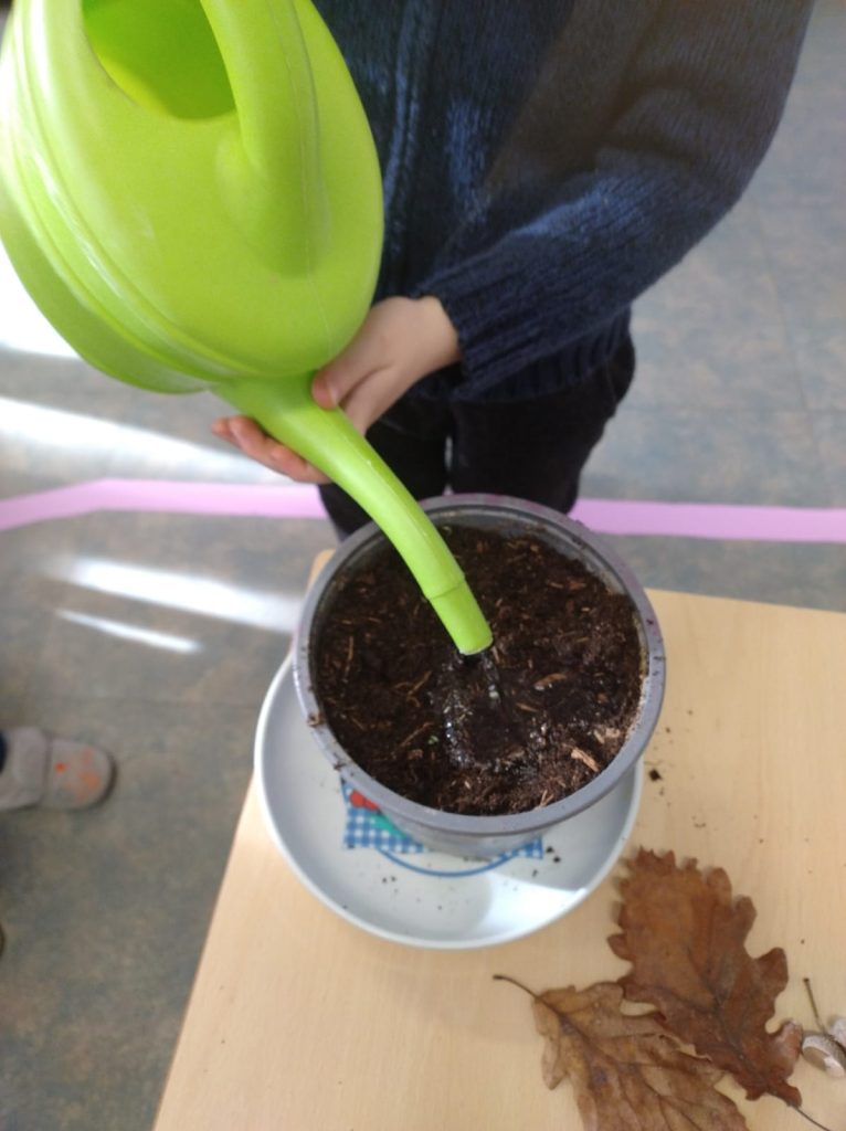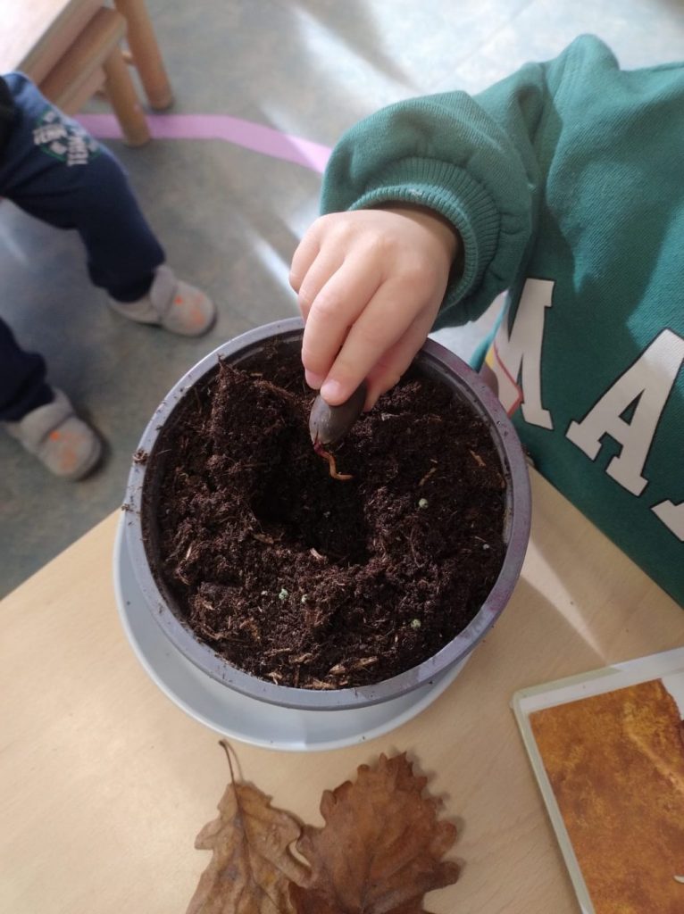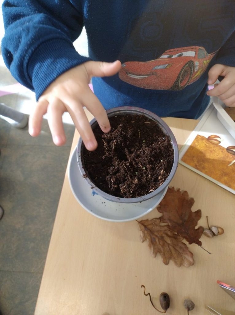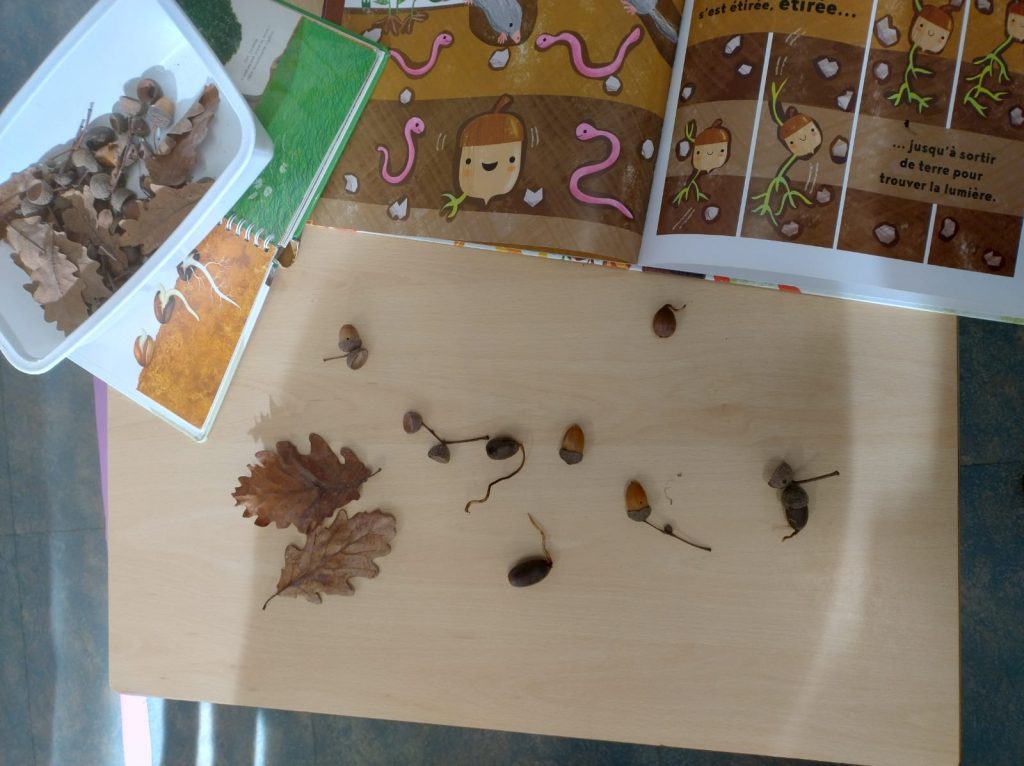 “On a trouvé un gland qui a une racine qui pousse. C’est comme dans le livre “Le petit gland”. Du coup, on l’a mis dans la terre.”