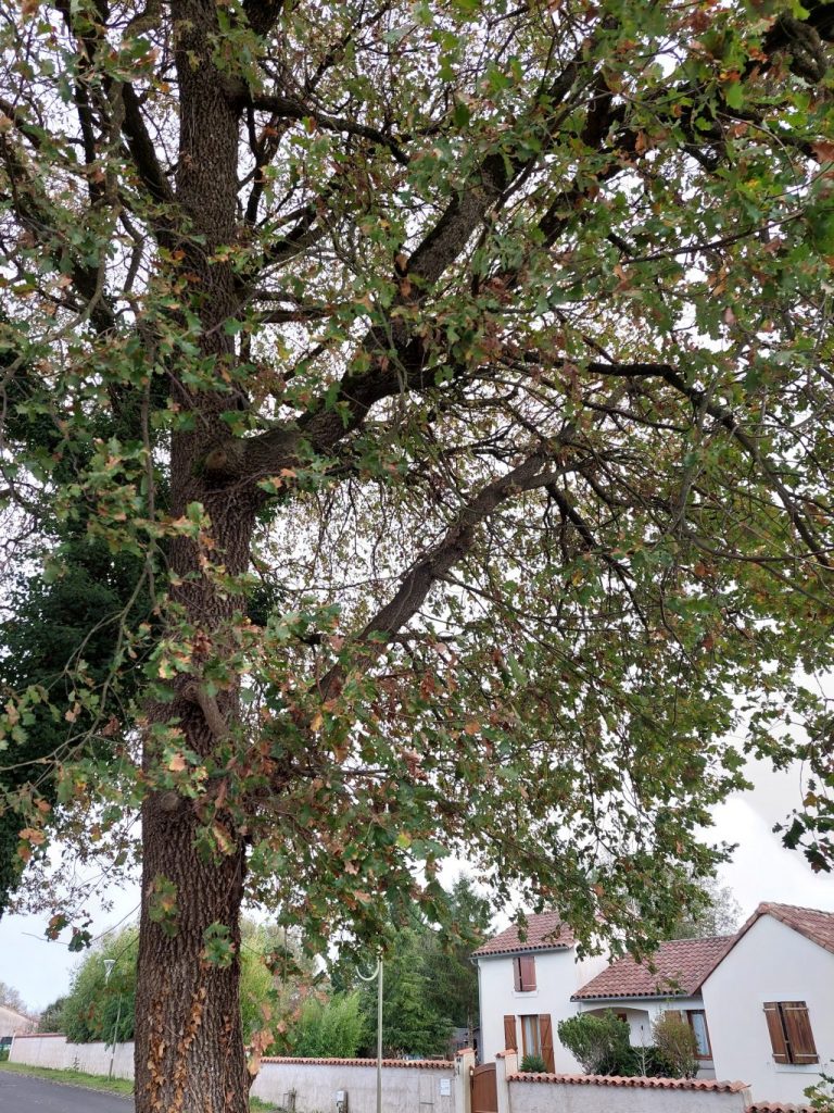 On a trouvé un beau chêne rue Promenade des Rocs. Il y avait un tapis de glands (fruits du chêne)