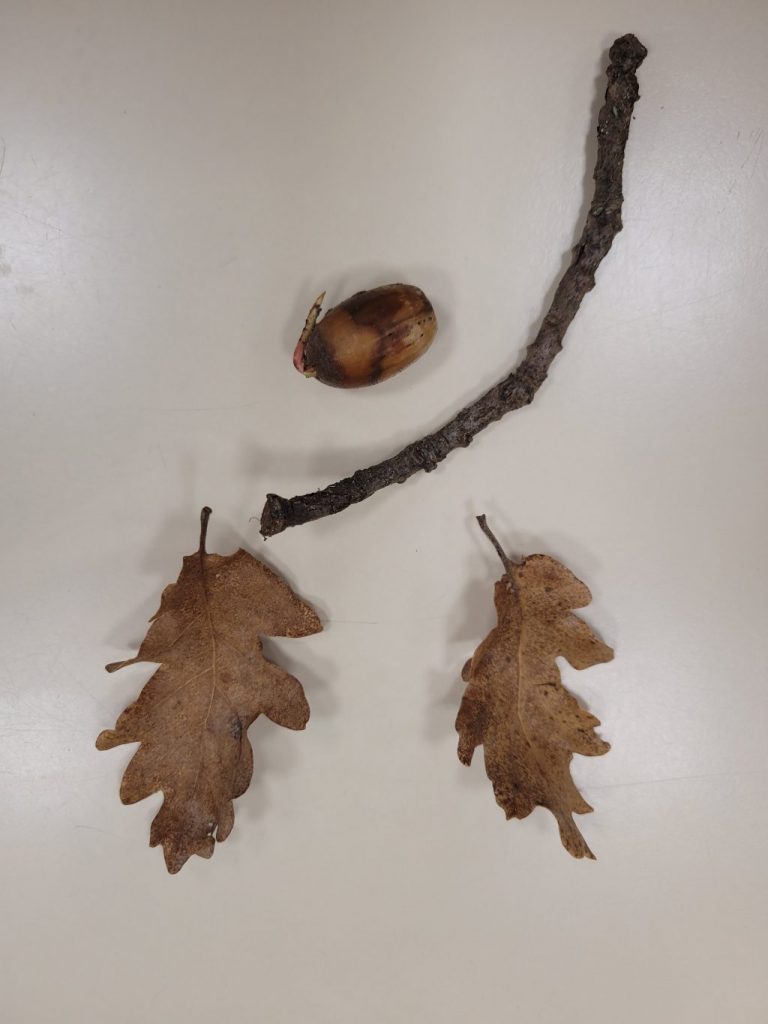Nous avons également ramassé quelques feuilles et glands avec leurs chapeaux (qui portent le doux nom de cupule)