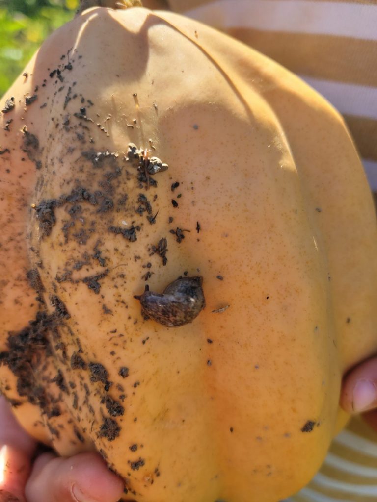 Nous avons trouvé la limace lors de notre sortie au Jardin Respectueux. Elles étaient en train de grignoter des courges.