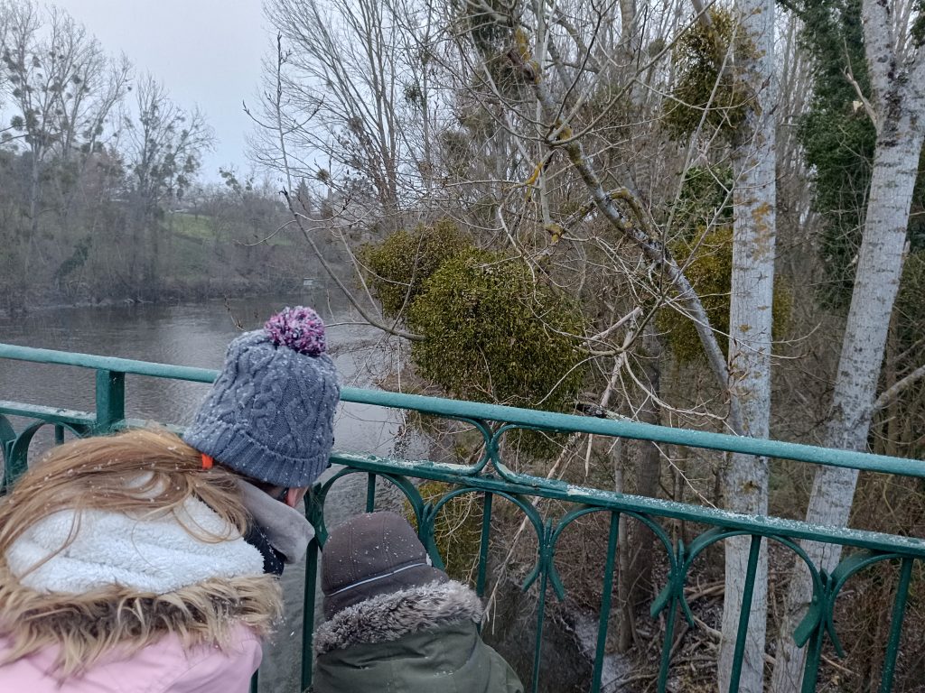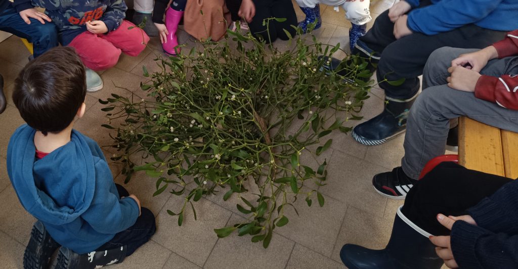 Nous avons trouvĂ© ce matin juste Ă cĂŽtĂ© de l’Ă©cole des peupliers avec des boules de gui. Un habitant du village nous a apportĂ© une boule de gui en fin de matinĂ©e pour que l’on puisse l’observer.