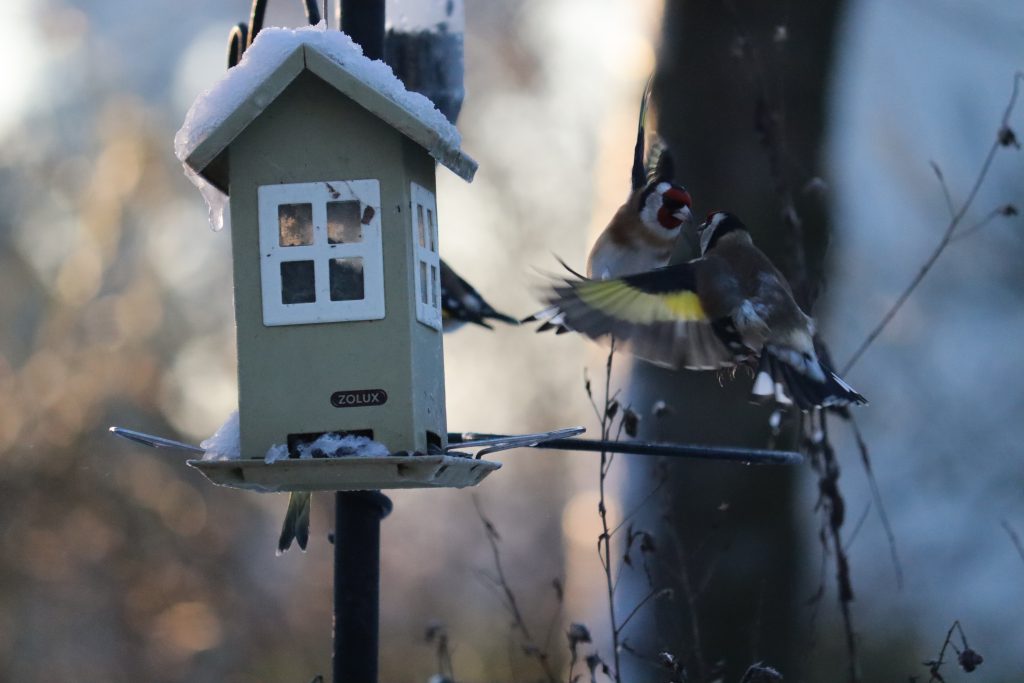 Pendant les vacances de Noël, plusieurs enfants ont eu la chance d’observer des chardonnerets dans leur jardin grâce aux mangeoires qu’ils avaient installé. Par contre, aucun n’a réussi à les prendre en photo. Seule la maitresse a fait quelques photos.