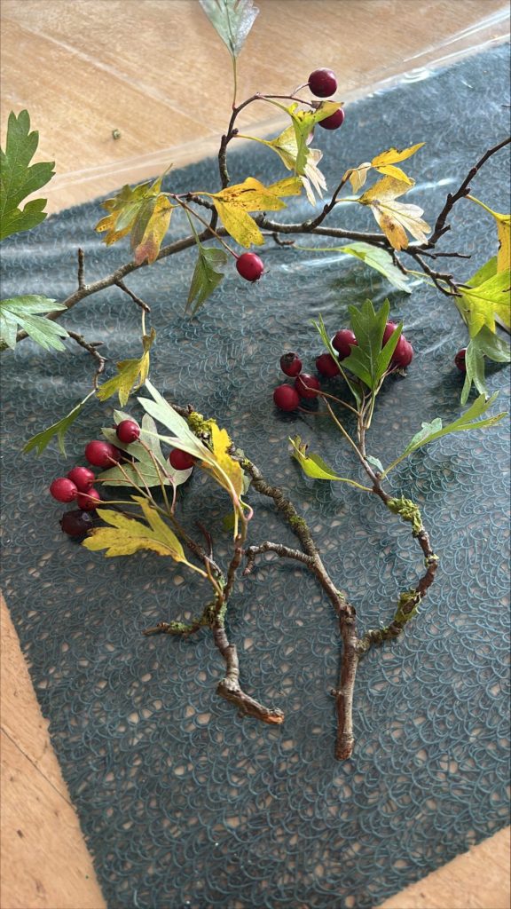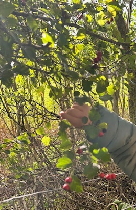 Nous avons trouvé de l’aubépine dans le jardin, à côté de l’école. Il avait des fruits rouges et beaucoup de branches et de feuilles. Léonie en a aussi trouvé dans le jardin de ses grands-parents. Louisa en a vu chez son voisin.