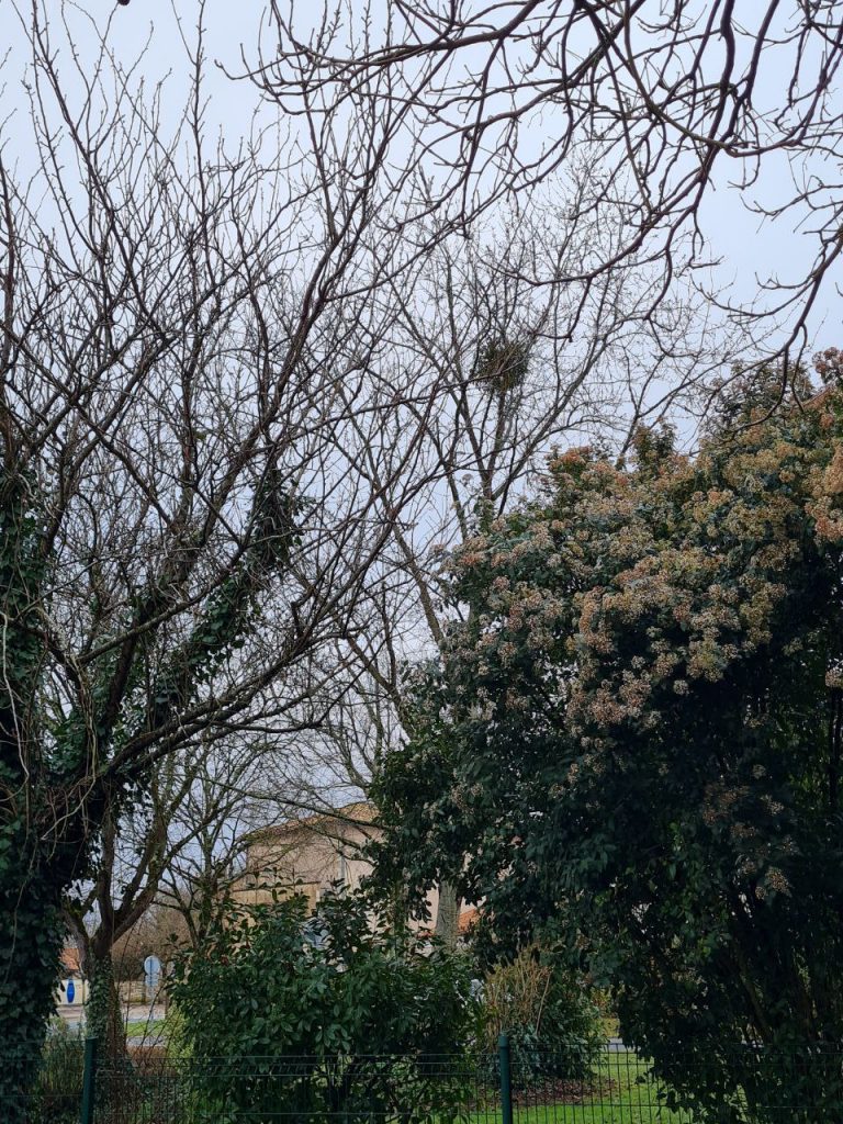 Avant d’aller Ă  la bibliothĂšque de Saint-Sauvant, nous nous sommes rappelĂ©s de la quĂȘte de Woody et la maitresse nous a demandĂ© de bien regarder en haut des arbres pour chercher du gui.