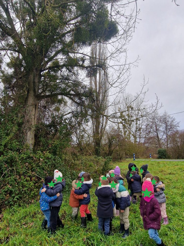 On a fait un bisou et un câlin quand on était dessous des boules de gui, parce que ça apporte du bonheur, de la chance et de l’amour.