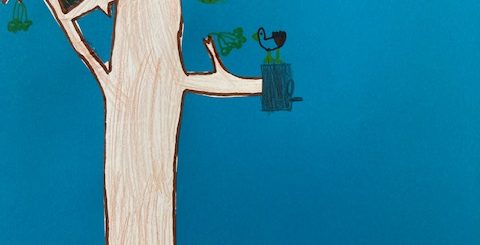 Ça ressemble à une grosse boule avec des feuilles vertes, avec des petits pompons verts et des petites boules empoisonnées et blanches. On a trouvé dans les arbres, ça pousse en boule. On a marché beaucoup !