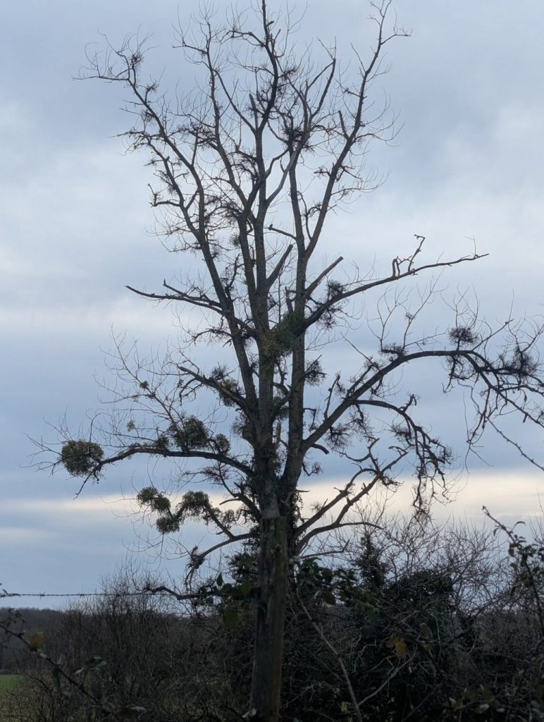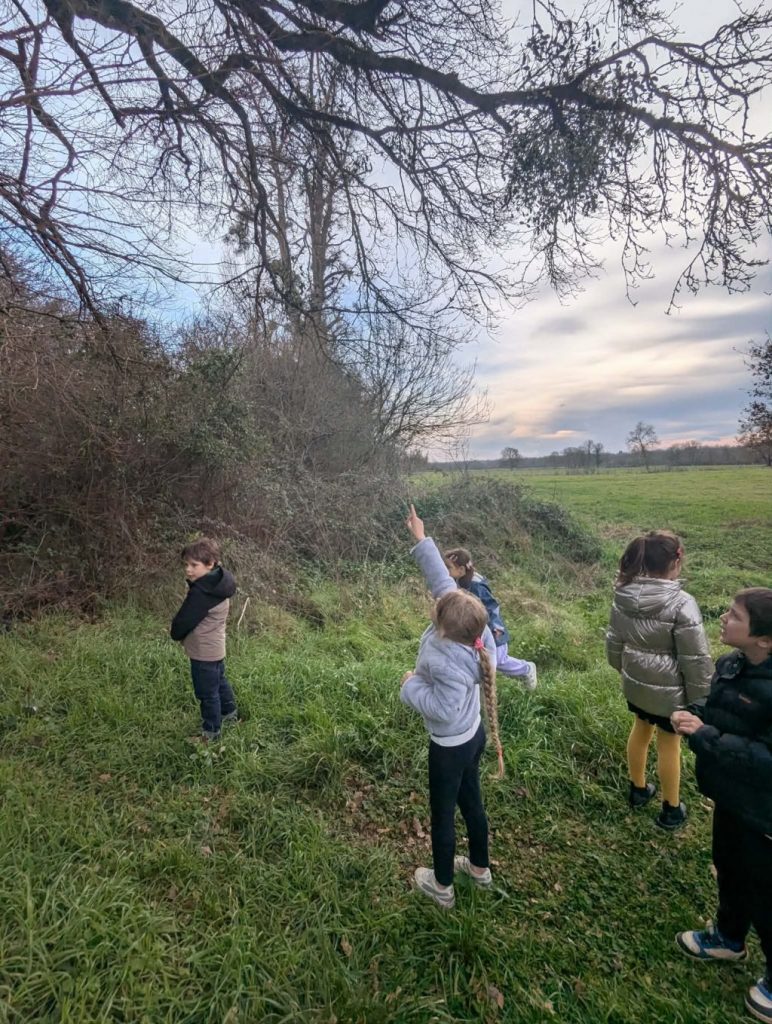 Nous avons repéré un arbre avec plein de gui depuis un chemin puis nous nous sommes approchés pour l’observer de plus près.