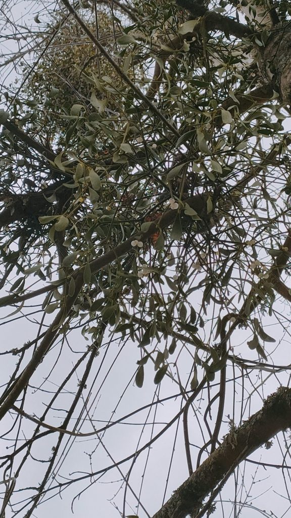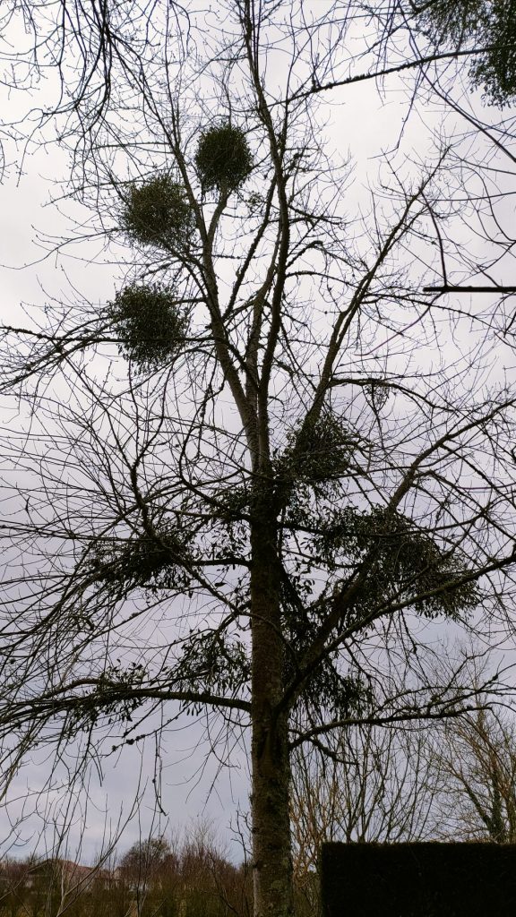Nous avons trouvé du gui en haut de plusieurs arbres.