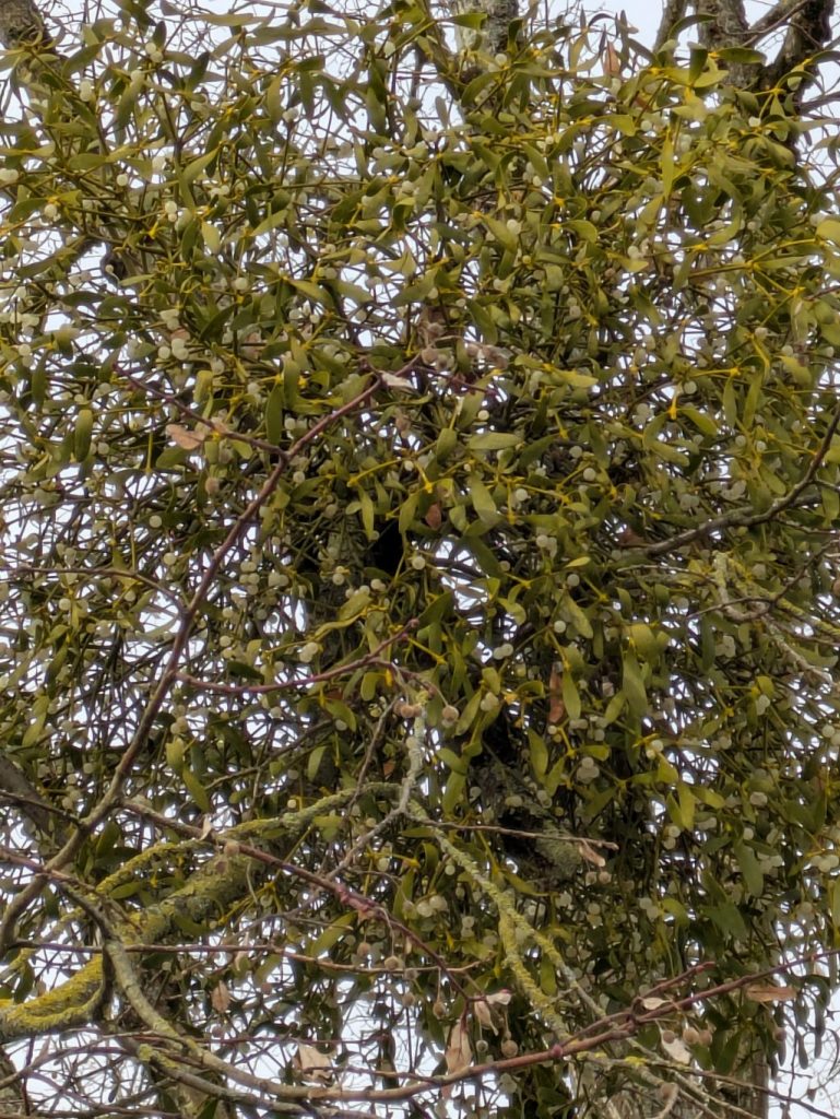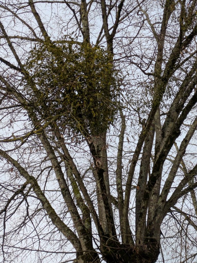 En rentrant du sport on est allé chercher du gui au parc au bord de la Vienne. On en a vu dans un arbre.