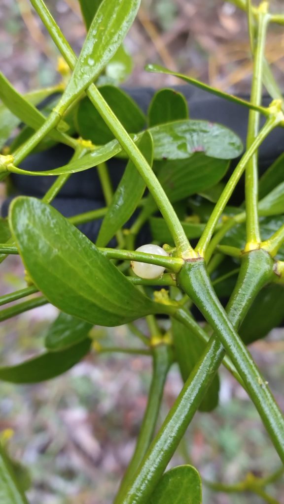 En nous approchant, nous avons découvert une branche cassée avec du gui dessus.