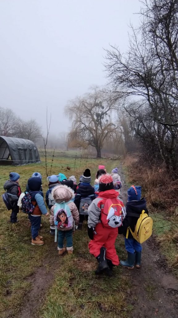 Lors de notre matinĂ©e Ă  l’Ă©cole du dehors, nous avons dĂ©cidĂ© de faire un petit dĂ©tour pour trouver le gui.