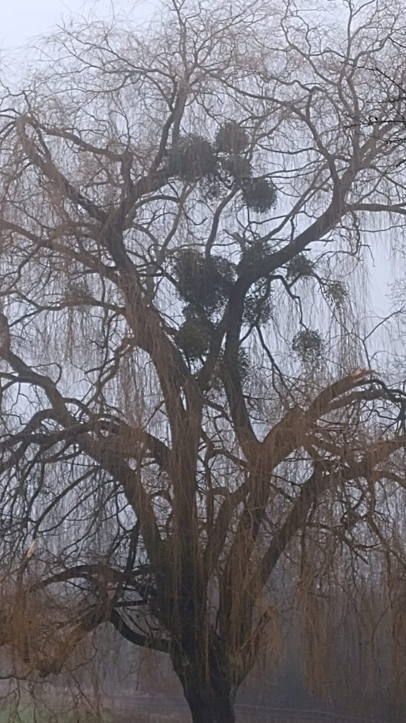 Au bout d’un chemin, il y avait un grand arbre avec de grosses boules: du gui.