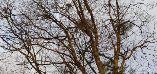 Au bout d’un chemin, il y avait un grand arbre avec de grosses boules: du gui.