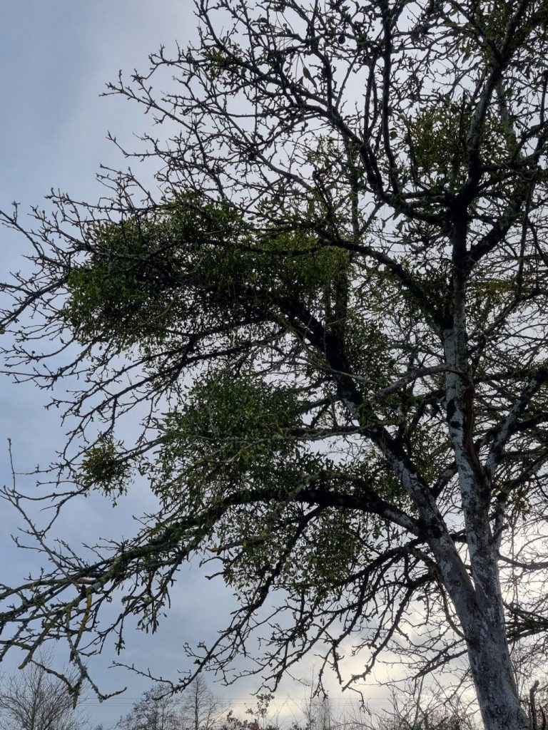 Le gui s’est accrochĂ© aux branches d’un pommier.