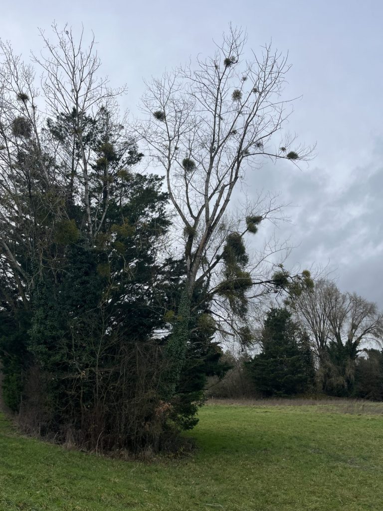 Nous sommes allés au parc de la Robla, nous avons trouvé du gui en haut des arbres.