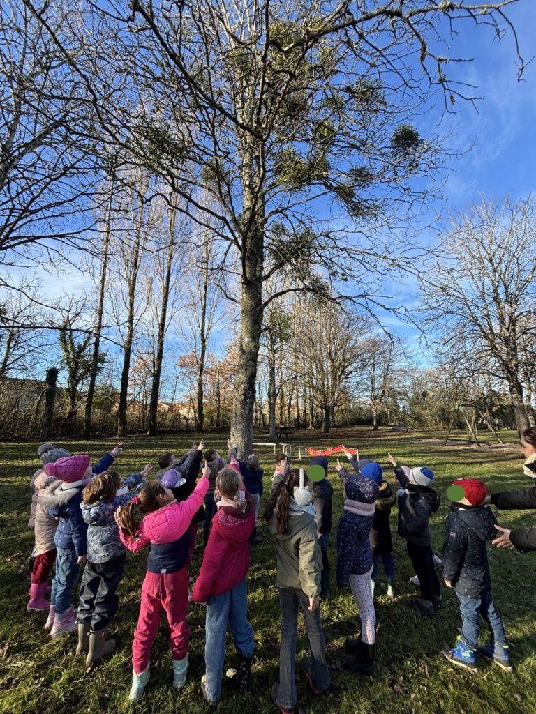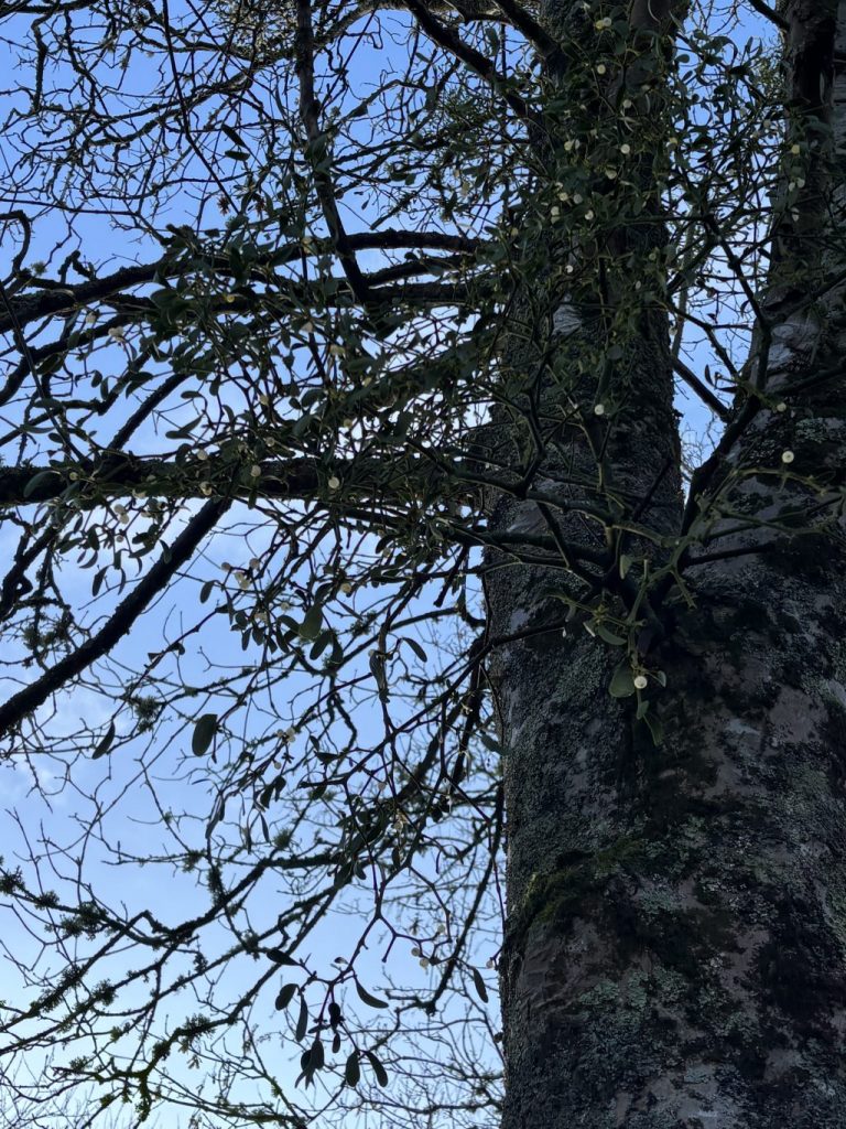 Le mercredi suivant, en allant chercher le gui que Margaux avait trouvé, c’est Naël, qui, en levant la tête a trouvé du gui, dans un grand arbre, à côté de la table.