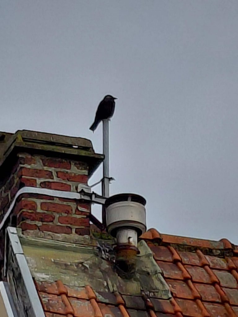 En nous rendant à la médiathèque ce matin, nous avons vu une corneille noire posée sur une cheminée. Nous en avons aperçu aussi en plein vol durant la récréation.