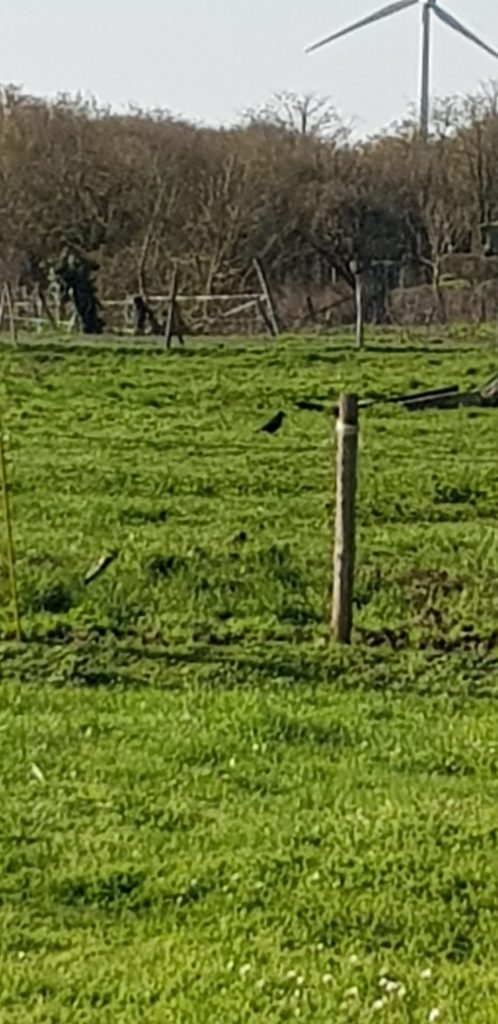 Bonjour Woody ! Nous avons profitĂ© du retour du beau temps pour partir en quĂȘte de la corneille noire. Nous en avons vu plusieurs autour des champs des baudets du Poitou qui sont en bas de l’Ă©cole. On ne la voit pas beaucoup sur la photo car elle Ă©tait assez loin.